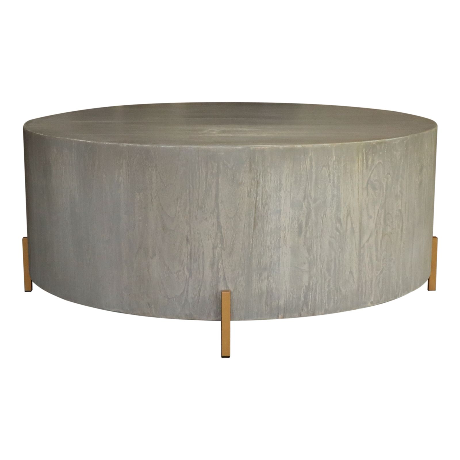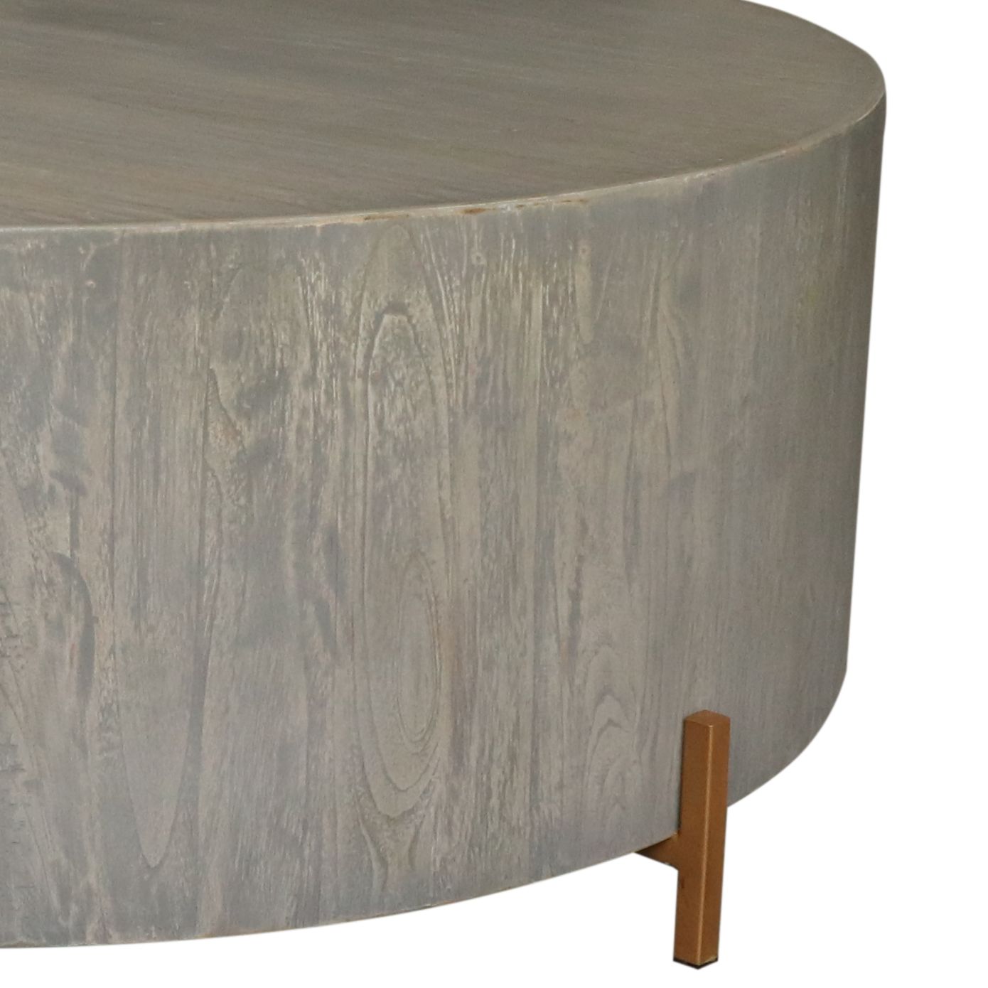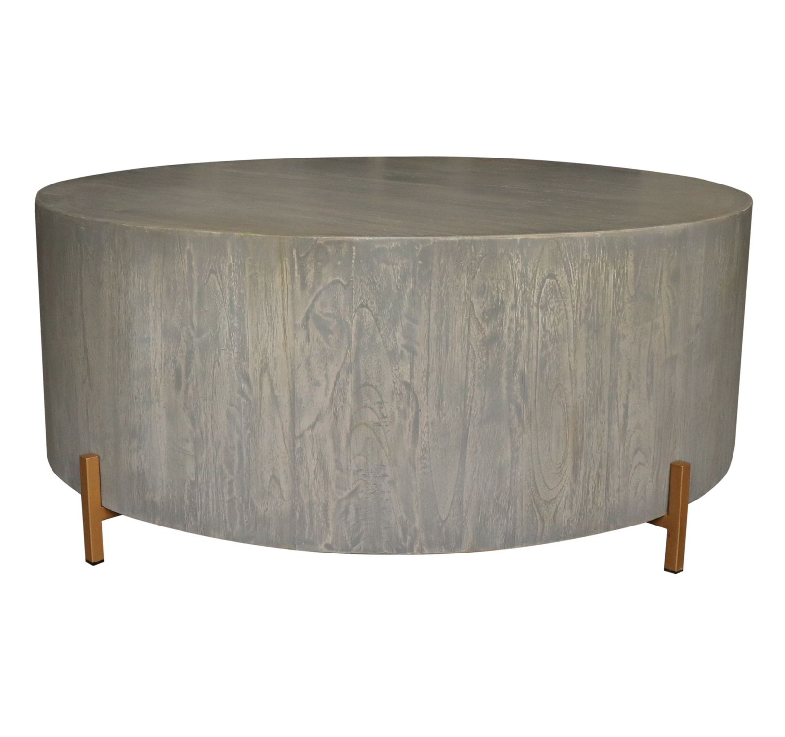 Exclusiva mesa de centro fabricada en madera exotica con terminación de pintura vintage y patas de fierro de color dorado