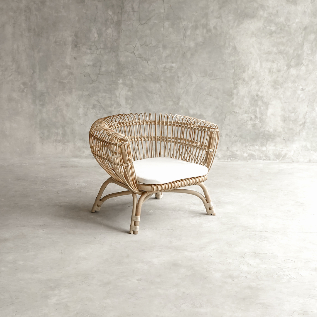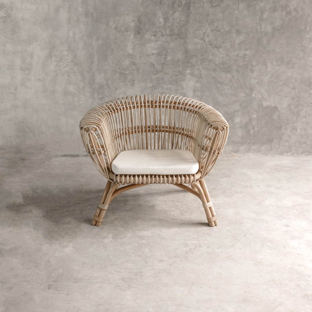 El Sitial Havana está fabricado en rattan natural, trabajado artesanalmente para lograr una estructura envolvente, orgánica y visualmente ligera.